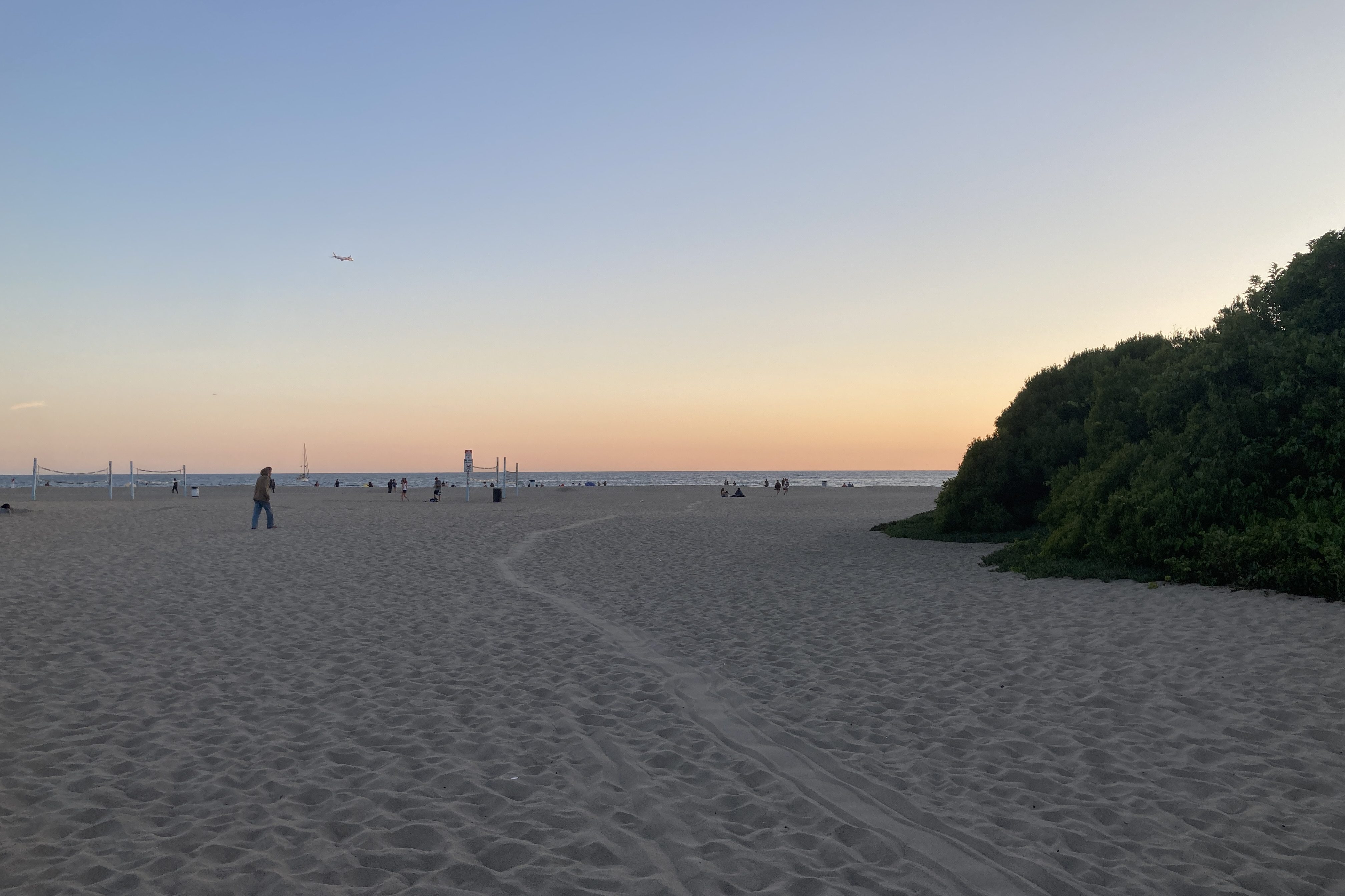 Sometimes I would sit on the beach near the studio for a little while while the sun set, people-watching. Occasionally, in the June gloom of the early mornings, I’d swim, setting my shoes and shirt down on the sand somewhere between the lifeguard tower and the sleeping setups of the unhoused people who survived by spending their nights on the beach. They were there every time I went, except in the week or so after each ‘beach cleaning’ carried out by LA Public Works.